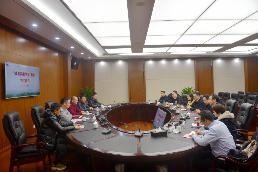 2022年1月13日下午,西南医科大学第二轮“兆海奖助学金”捐赠签约仪式在学校城北校区第一会议室举行。捐赠方代表一行5人,学校党委书记廖斌,党委副书记、校长张春祥,党委副书记刘毅,党委常委、副校长聂敏海以及学校相关职能部门负责人参加了会议。