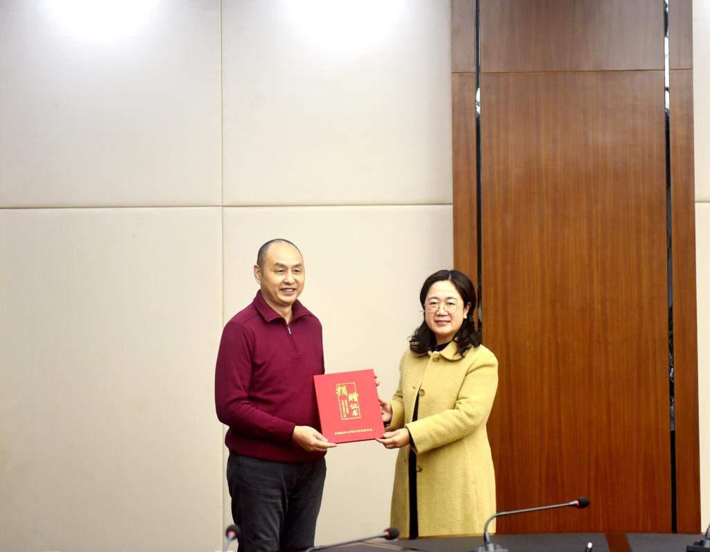 刘毅代表学校向捐赠方颁发捐赠证书。