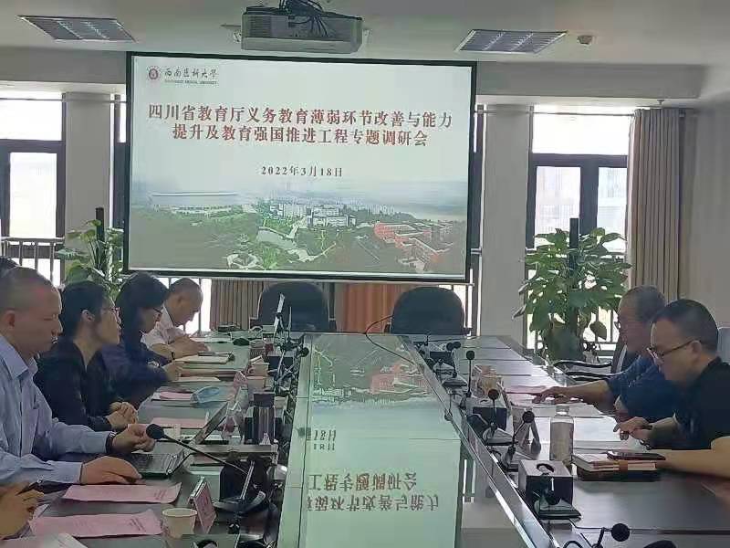 3月18日,四川省教育厅基建后勤处调研员陈鲁等一行3人到我校调研教育强国推进工程项目建设情况。学校党委常委、副校长聂敏海,泸州市教育和体育局副局长何明英,学校基建后勤处处长龚虹等人员陪同调研。