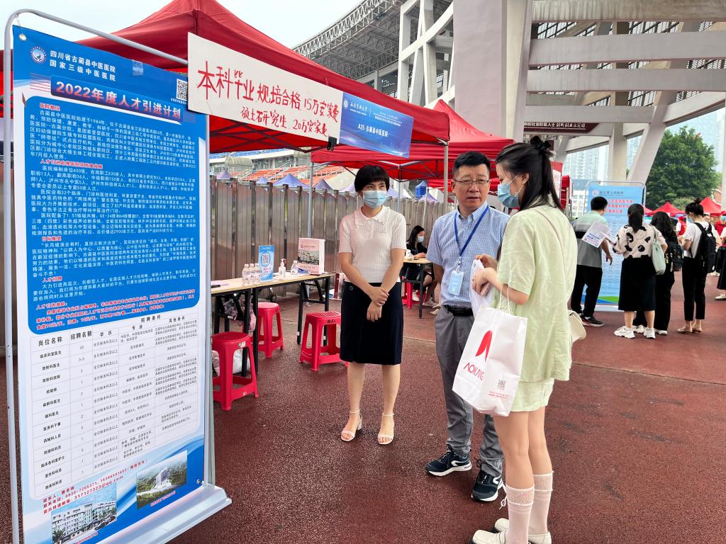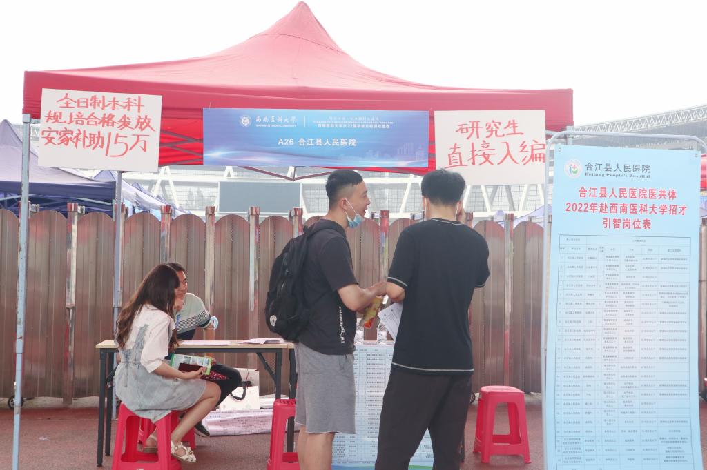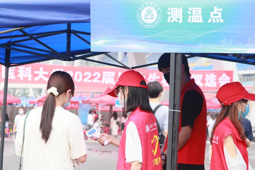 6月18日,西南医科大学2022届毕业生校园双选会在奥体中心举行。160余家用人单位来到招聘现场,其中三级医院约40家,二级及以下医院约100家;医药类企业约20家,提供岗位5000余个,各院系组织未就业毕业生积极参加现场招聘,其中本科生315人、研究生48人、规培生23人。现场井然有序,用人单位千方百计招引人才,毕业生们整装待发勇往“职”前。