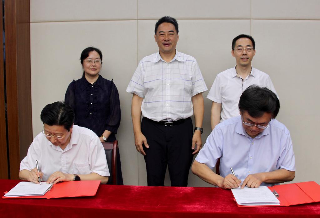 口腔医学院·附属口腔医院院长肖金刚简要介绍口腔医学研究所筹备、建设情况;人事处处长刘文胜宣读田卫东教授的聘任文件;彭钢代表学校同田卫东教授签订聘任协议。