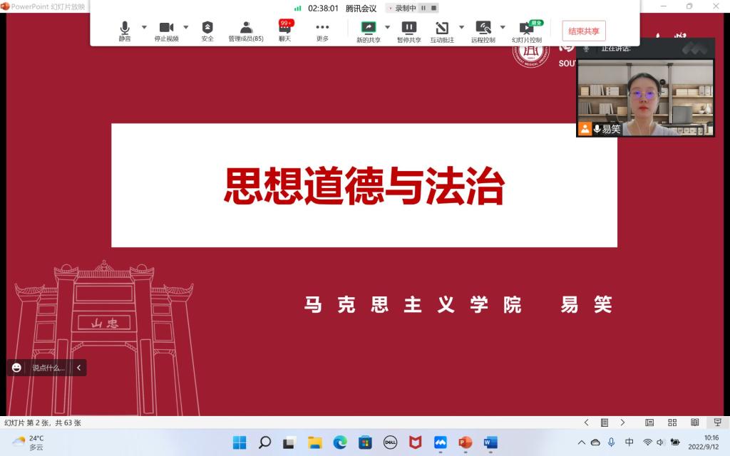 新生线上教学第一天,全体任课教师严格落实《关于进一步规范教师线上教学行为的通知》要求,提前15分钟进入课堂,提前完成学生签到,各项工作准备完善。教师在课堂上有序组织教学,积极引导学生参与连麦、回答问题等,有效提高新生的学习参与度,激发了新生的学习兴趣,课堂氛围活泼生动。新生准时到课、认真听讲、做好笔记、积极思考与互动,展现出良好的精神风貌与崭新气象。