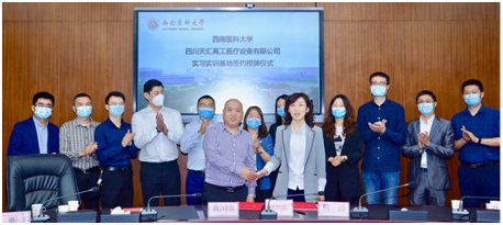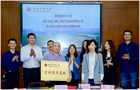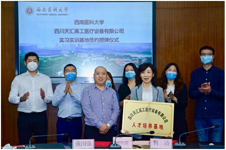 为进一步提高医学工程专业学生的实践动手能力,20221021日,西南医科大学、四川天汇高工医疗设备有限公司(以下简称天汇高工)实习实训基地签约授牌仪式在德诚楼一会议室举行。仪式上,双方签订校企共建实习实训基地合作协议并互授《人才培养基地》《实践教学基地》铜牌。学校党委常委、副校长何涛,教务处、医学信息与工程学院、附属医院、附属中医院相关人员和四川天药医药集团有限公司执行董事、四川天汇高工医疗设备有限公司总经理戴国强,四川天药医药集团有限公司总经理李昕,副总经理代运杨及相关部门负责人参会。
