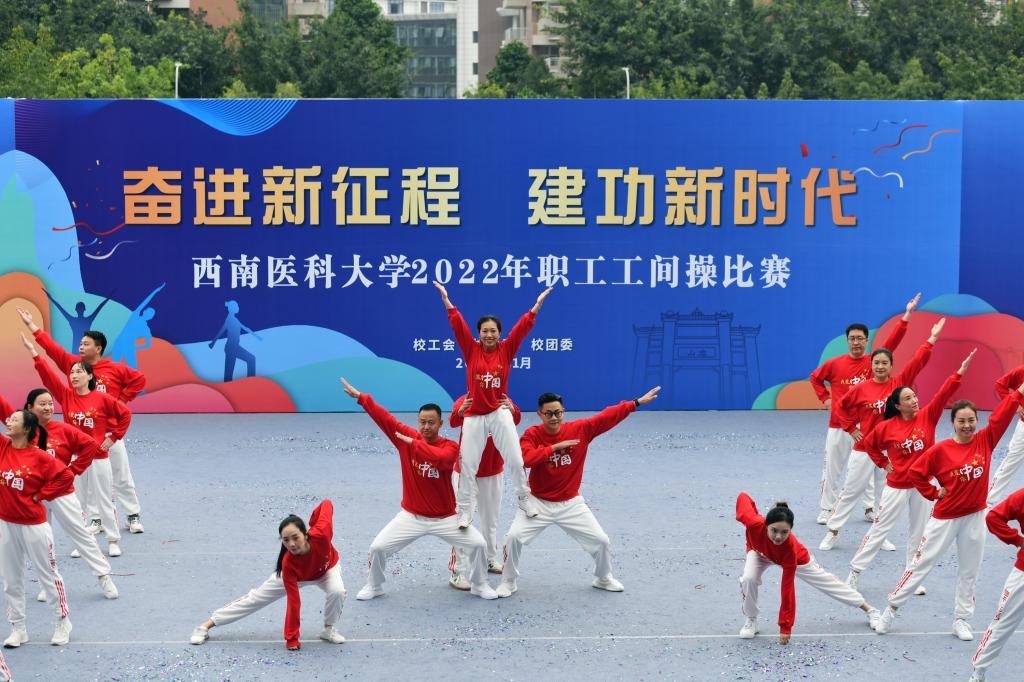 为认真贯彻落实党的二十大精神,展示我校教职工朝气蓬勃、积极向上的精神风貌,11月3日,学校在青年体育馆前广场举行“奋进新征程 建功新时代”职工工间操大赛。