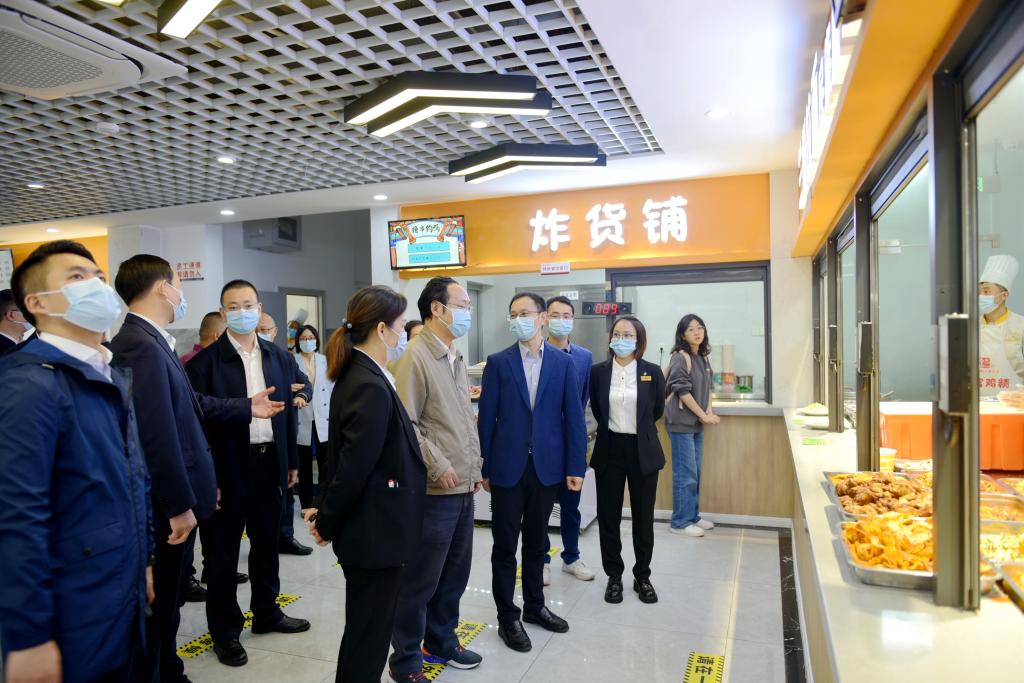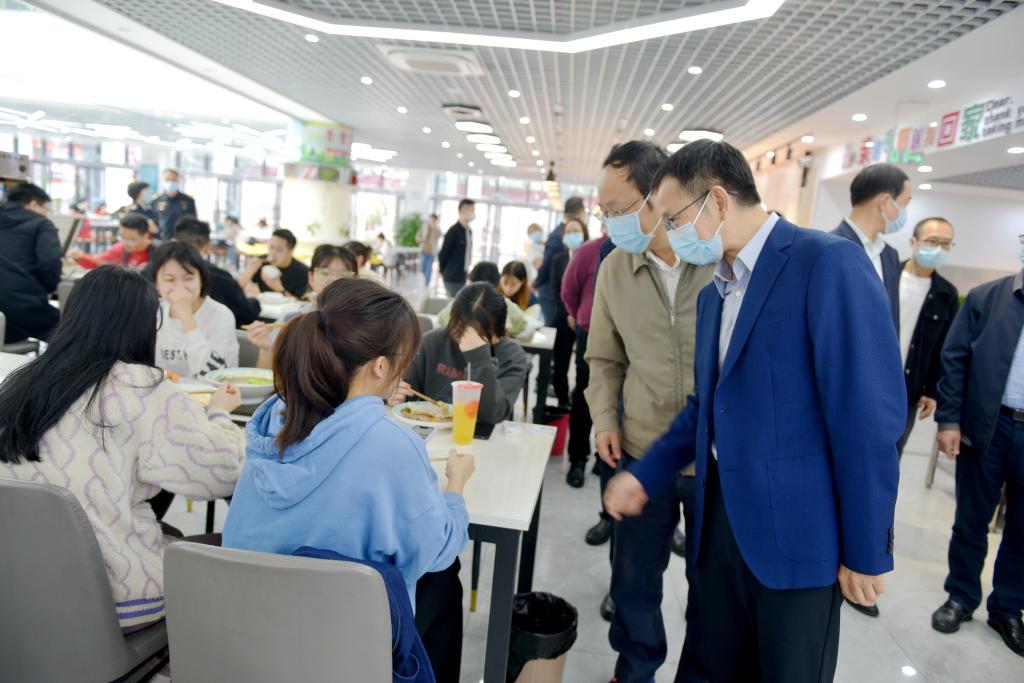 为深入学习宣传贯彻党的二十大精神,进一步压紧压实食品安全属地管理和企业主体“两个责任”,11月10日,市委常委、统战部部长、市总工会主席李堂兵深入食品安全包保单位西南医科大学城北校区,督导调研食品安全工作。市经济和信息化局副局长张伟、市市场监管局副局长徐俭,龙马潭区委常委、统战部长李平,区政府副区长龚绪,以及学校党委常委、副校长聂敏海,宣传部•统战部副部长唐开秀,基建后勤处处长龚虹、副处长谢莉陪同调研。