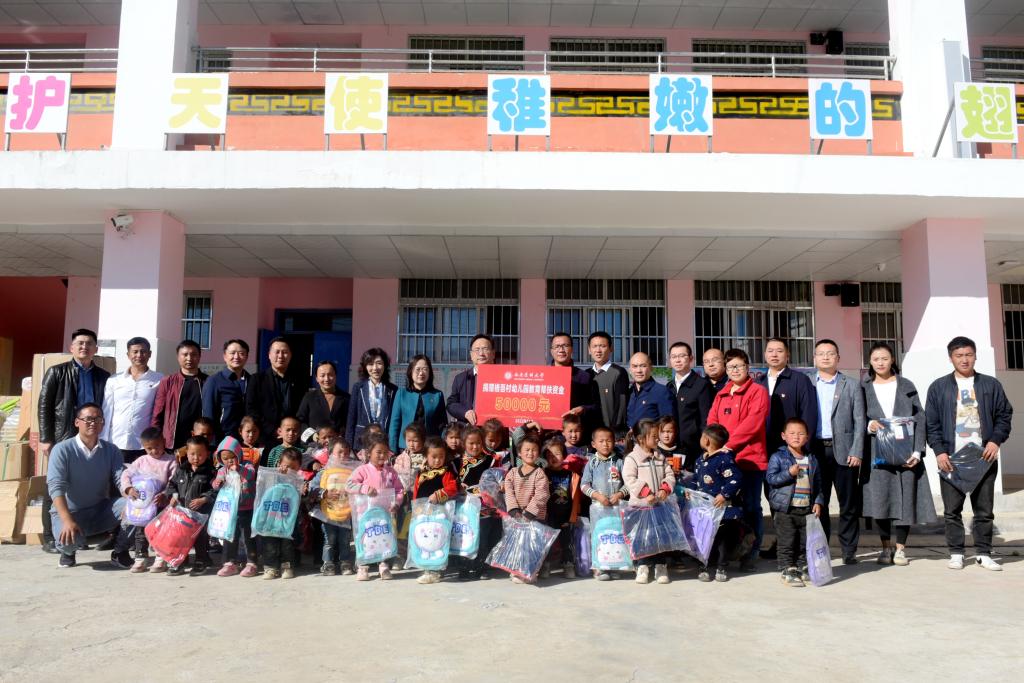 在格吾村幼儿园,举行了教育帮扶资金捐赠仪式,学校一次性捐赠5万元用于支持村幼儿园软硬件建设提升,不断改善孩子们生活学习环境。随后,张春祥等还向37名儿童赠送了书包、羽绒服、文具、玩具等物品。