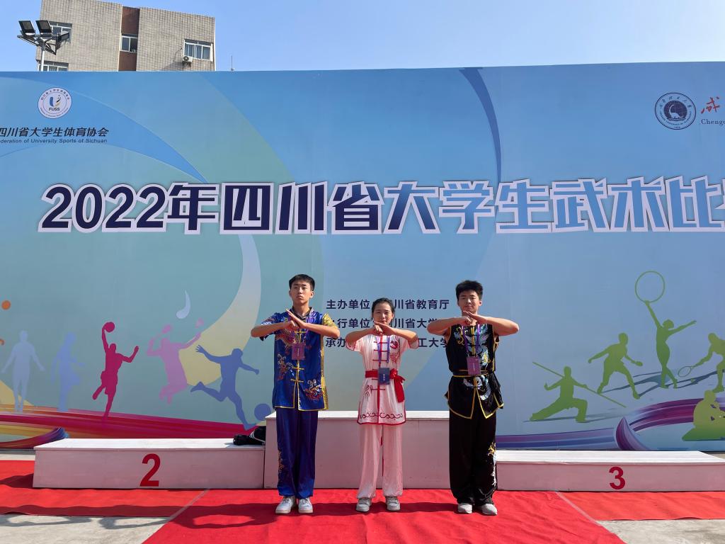 11月18日至20日,由四川省教育厅主办、成都理工大学承办的2022年四川省大学生武术比赛在成都理工大学体育馆举行。来自四川大学、成都理工大学、成都体育学院等省内30余所高校近400名运动员参加了此次比赛。体育学院副院长刘昊、武术教练马彪带领3名学生参加了本次比赛。