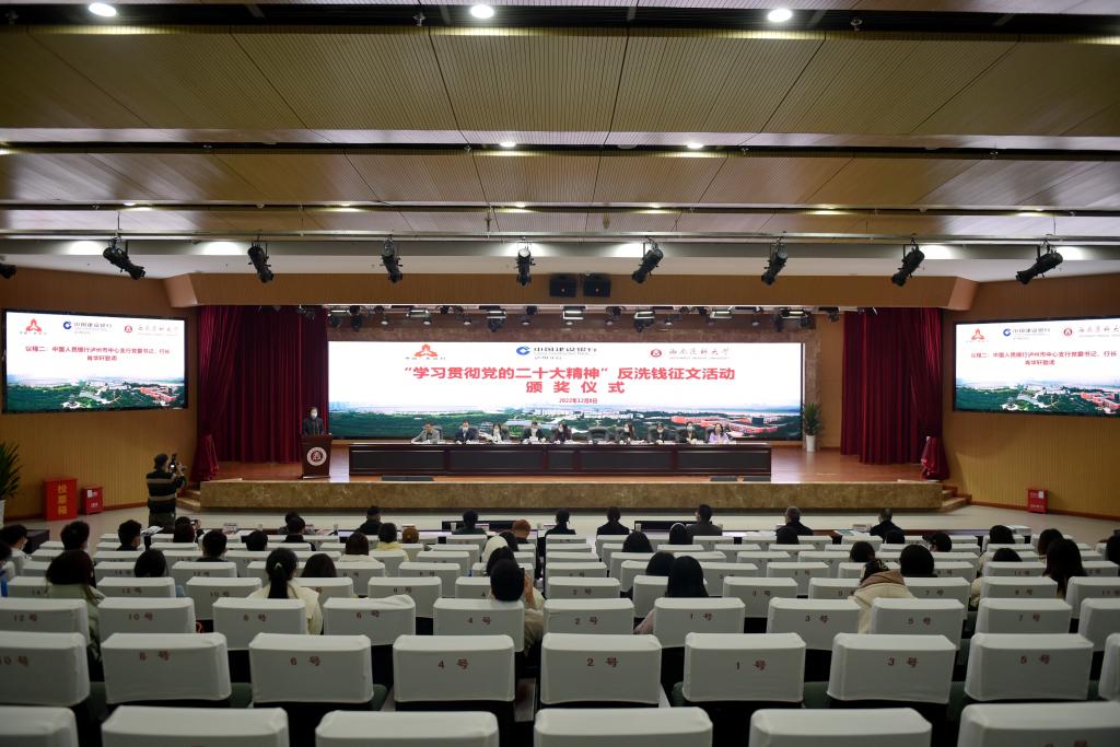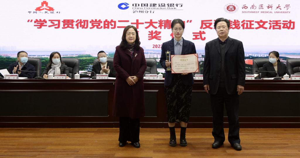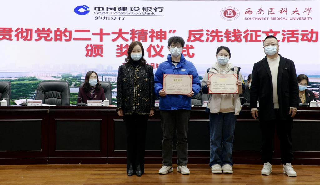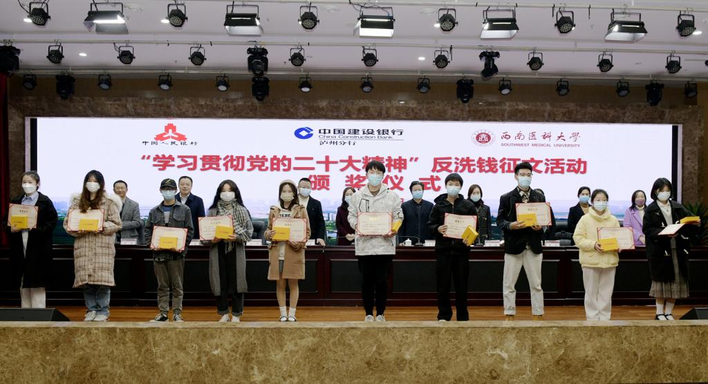 12月8日,“学习贯彻党的二十大精神”反洗钱征文活动颁奖仪式在我校第一学术报告厅举行。中国人民银行泸州市中心支行党委书记、行长肖华轩,党委委员、副行长王岚,中国建设银行股份有限公司泸州分行党委书记、行长邹凌云,党委委员、副行长袁东;学校党委副书记刘毅,学生工作部副部长、团委书记石惠,研究生院党总支书记朱小平、学生工作部副部长易娟,法学院党总支书记廖女男及师生代表出席颁奖仪式。颁奖仪式由法学院院长罗刚主持。