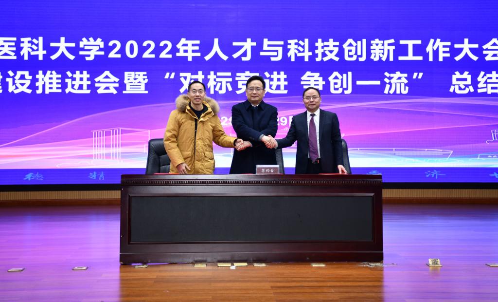 张春祥与先后与临床医学院·附属医院、药学院、中医结合学院·附属中医医院、口腔医学院·附属口腔医院签订“一流学科”建设任务书。