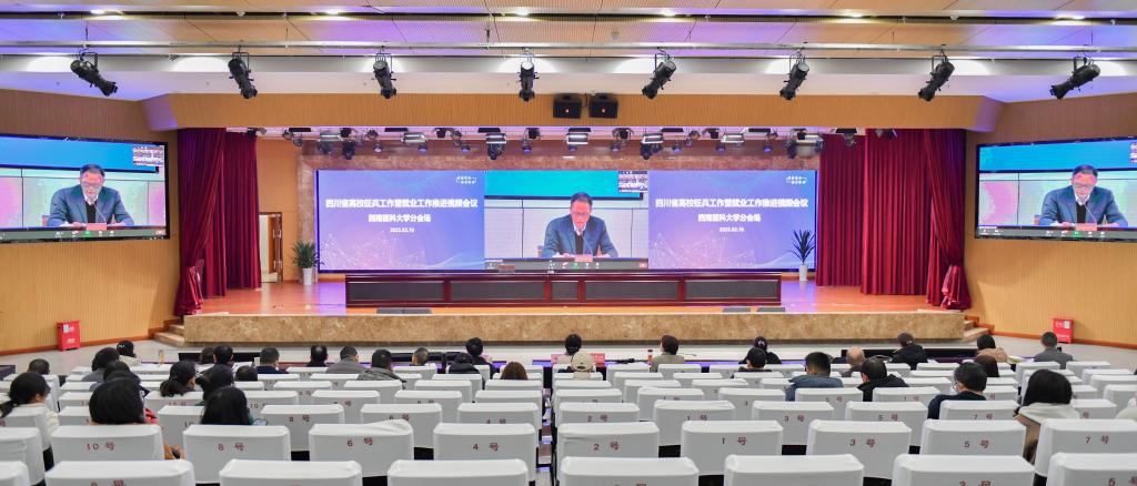 省委教育工委委员,教育厅党组成员、副厅长陈朝先出席会议并讲话,教育厅高校学生工作处处长李浩、就业指导中心主任乔木通报全省高校征兵、就业数据统计、访企拓岗等有关工作情况,四川轻化工大学、宜宾学院作经验交流发言,西南石油大学作表态发言。会议由教育厅二级巡视员杨建国主持。