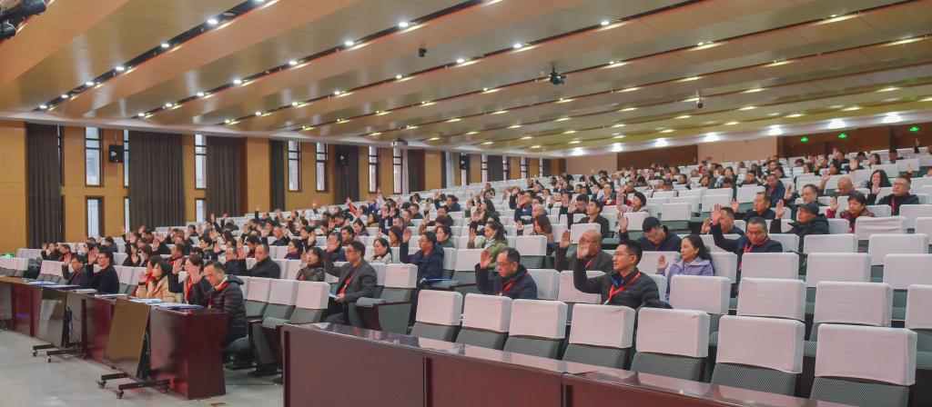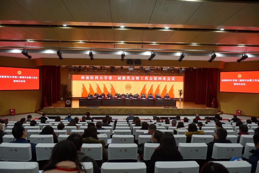 2月22日上午8:30,西南医科大学第二届教代会暨工代会第四次会议第一次全体会议在城北校区德诚楼学术报告厅召开。学校领导、正式代表、特邀代表、列席代表共计240余人,齐聚一堂,共商学校大事,共谋学校发展。