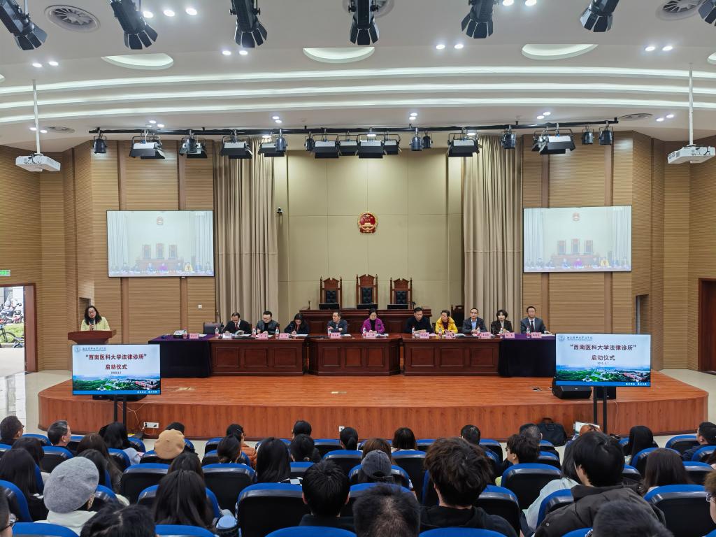 3月1日,“西南医科大学法律诊所”正式挂牌成立,启动仪式在学校城北校区模拟法庭隆重举行。学校党委副书记刘毅出席启动仪式并讲话。人事处、武装保卫处、工会、教务处、学生工作处、研究生院等部门负责人,泸州市中级人民法院法官刘学武、四川明炬(泸州)律师事务所主任杨霞、四川一多律师事务所主任魏朝述应邀参会。法学院全体教职工、研究生和本科生代表参加了启动仪式。法学院党委书记廖女男主持会议。