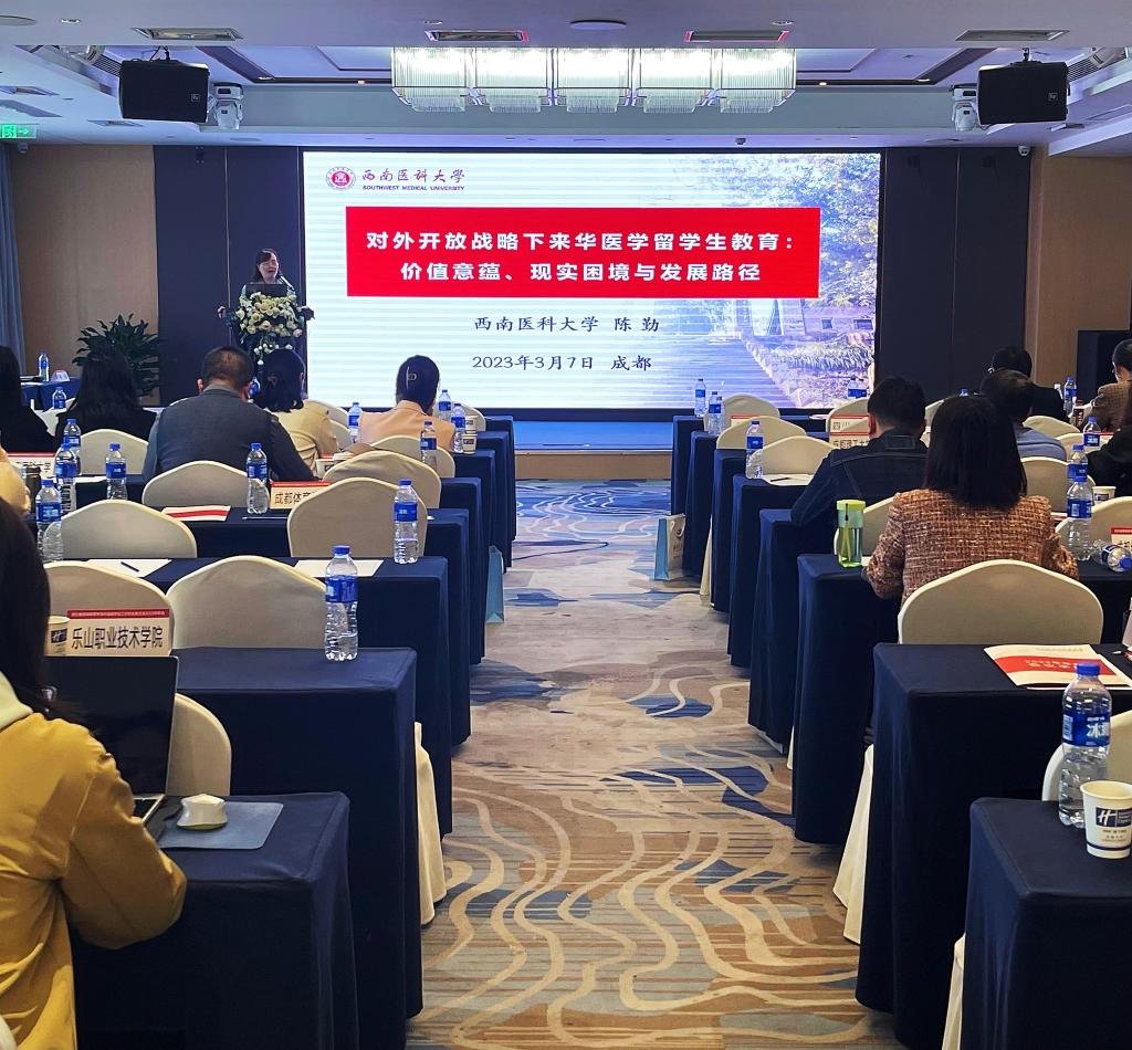 我校作大会交流发言,是唯一医学类院校优秀工作单位代表。国际教育学院院长陈勤以“对外开放战略下来华医学留学生教育:价值意蕴、现实困境与发展路径”为题作专题报告,展示了我校国际教育学院队伍扎实的业务能力、踏实的工作作风和奋勇向前的精神,获得与会领导及高校代表的高度肯定与一致好评。