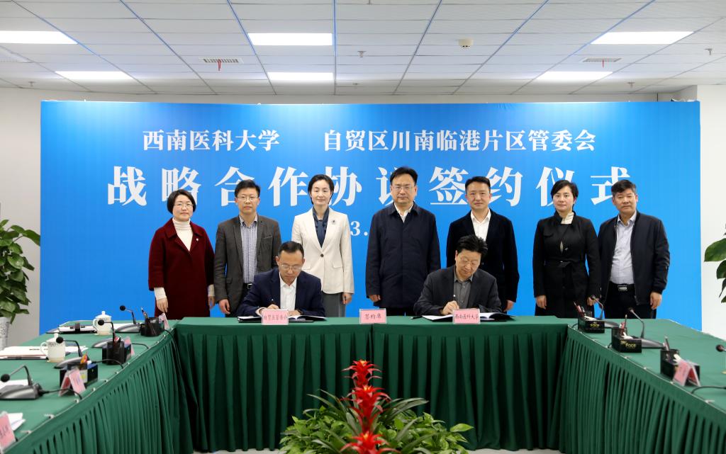 3月21日,自贸区川南临港片区与西南医科大学签订战略合作协议,开展高层次、宽领域、多角度的校地合作。泸州市人民政府副市长陈小艳,西南医科大学党委副书记、校长张春祥,党委常委、副校长彭钢出席会议。彭钢与自贸区川南临港片区党工委副书记、管委会主任蔡宗炜共同签署战略合作协议。自贸区川南临港片区在家班子成员出席签约仪式