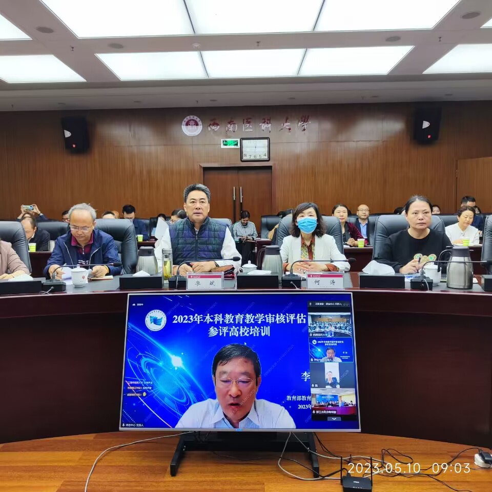 5月10日,学校在城北校区一会议室组织参加教育部2023年本科教育教学审核评估参评高校线上培训会,学校党委书记廖斌,党委常委、副校长何涛,全体职能部门和院系负责人全程参与了培训。培训会由教育部高等教育教学评估中心举办,教育部相关领导介绍了新一轮审核评估实施政策背景及“十四五”布局安排,审核评估方案研制核心专家解读了“两类四种”评估分类的总体设计,试点高校分享交流了新一轮审核评估对促进学校特色发展的重要价值和“迎评促建”相关经验。