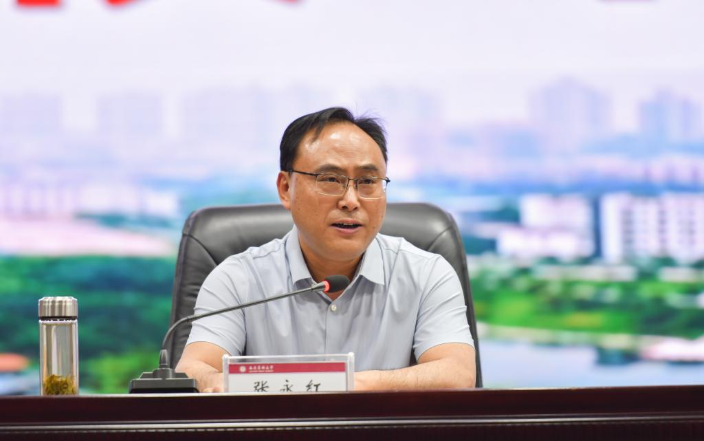 廖斌代表学校党委对张永红同志到学校工作表示热烈欢迎,并向全校干部职工提出三点希望和要求。一是坚决拥护省委、省纪委决定,全力支持张永红同志工作。全校党政领导班子和广大党员干部、师生员工,要统一思想认识,切实把思想和行动统一到省委、省纪委的决定上来,共同推动学校党的建设和各项事业高质量发展。二是希望张永红同志胸怀全局,履职尽责,全力推动纪检监察工作、分管工作落地落细,发挥工作经验优势,继续推进全面从严治党向纵深发展,为学校内涵式高质量发展保驾护航。三是统筹协调,系统推进学校内涵式高质量发展。全校上下要积极投身党代会筹备工作,开展好学习贯彻习近平新时代中国特色社会主义思想主题教育,落实党政工作要点,加强党的建设,以实际行动迎接西南医科大学第二次党代会的胜利召开,推动学校事业内涵式高质量发展,为四川现代化建设、健康四川作出西南医大贡献。