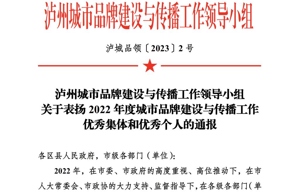 近日,为表扬先进、鼓舞干劲,泸州城市品牌建设与传播工作领导小组发布《2022 年度城市品牌建设与传播工作优秀集体和优秀个人名单》,西南医科大学获评2022年度城市品牌建设与传播工作优秀集体,学校党委宣传部副部长唐开秀、附属中医医院副院长徐厚平获评优秀个人。