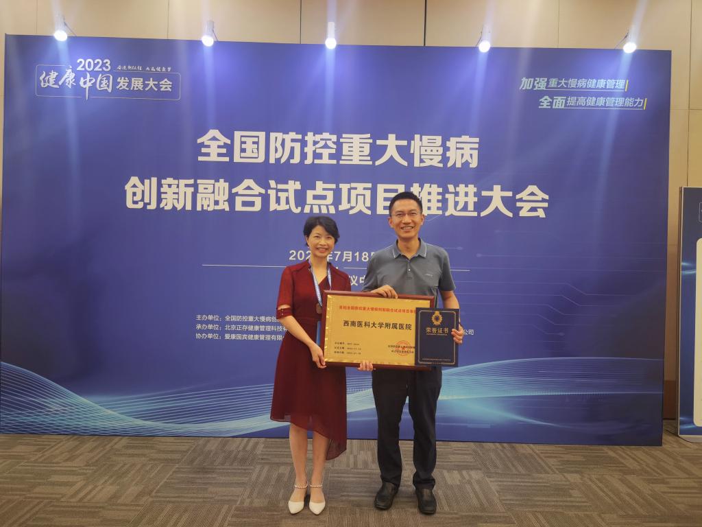7月18日下午,“全国防控重大慢病创新融合试点项目推进大会”在北京国际会议中心举行,大会公布了“首批全国防控重大慢病创新融合试点项目名单”,西南医科大学附属医院入选首批全国防控重大慢病创新融合试点项目单位,并获得授牌认证。西南医科大学附属医院党委副书记、院长江涌,健康管理中心科主任李晓红出席大会。