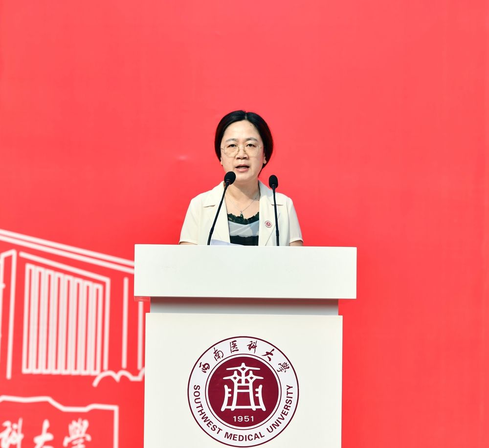 他谈到,西南医科大学是一所传承着红色基因的大学,拥有良好的办学基础,在知识传承中不断创新,在人才培养中不断突破。作为新时代的大学生责任重大、使命光荣,同学们必须持之以恒砥砺奋进,努力绽放青春光芒,在求知和创新中成为德智体美劳全面发展的时代新人。