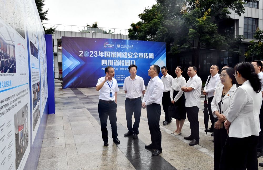 与会领导共同启动“校园日”活动,随后,参观了泸州市及西南医科大学网络安全宣传展板。