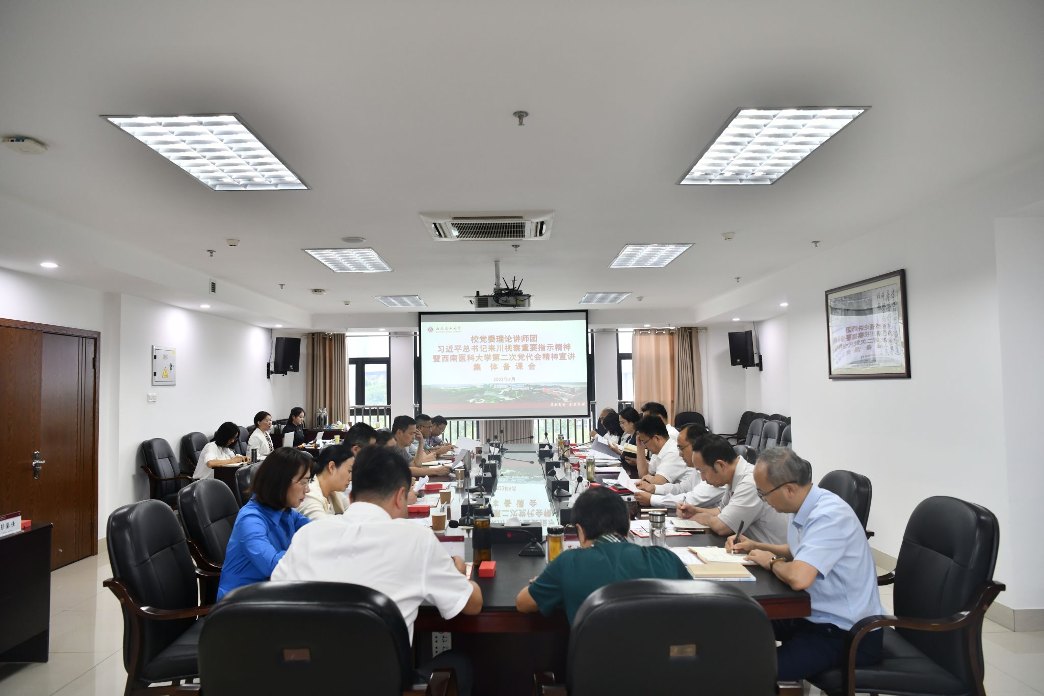9月12日下午,习近平总书记来川视察重要指示精神暨西南医科大学第二次党代会精神专题宣讲备课会在德诚楼621会议室举行,第三批党委理论讲师团全体成员参加备课会。会议由校党委副书记、理论讲师团副团长刘毅主持。