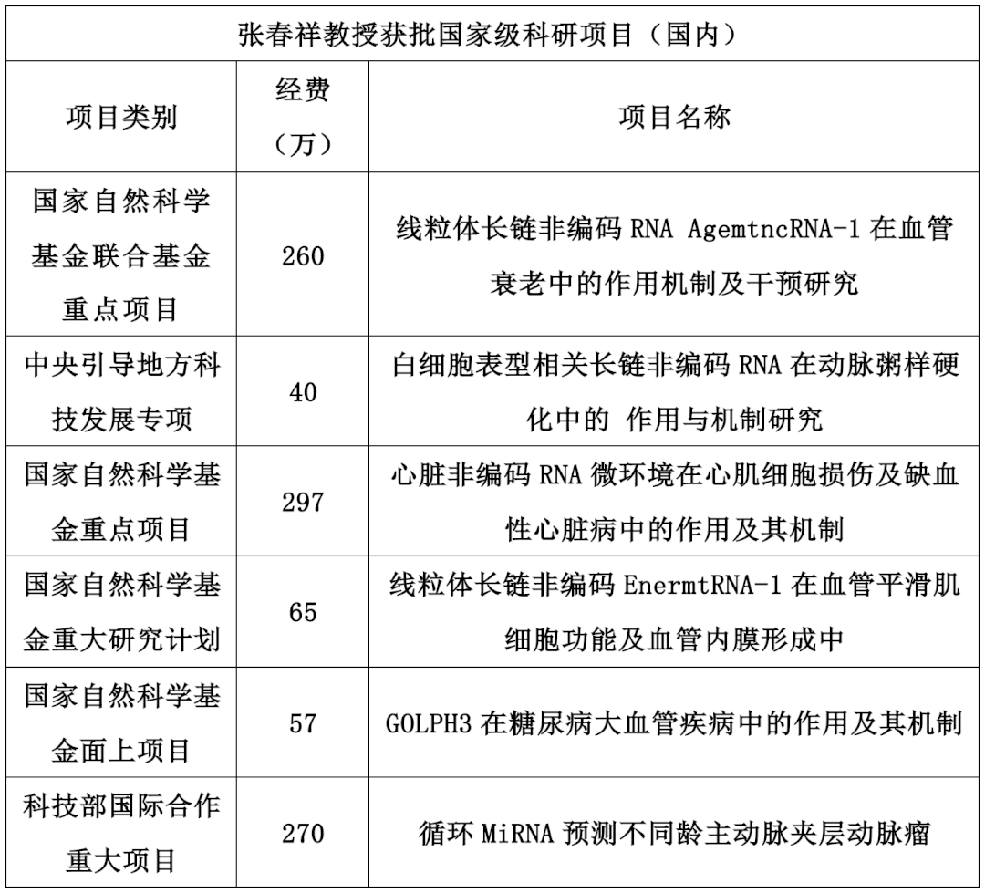 近日,国家自然科学基金委传来喜讯,由我校党委副书记、校长、医学电生理学教育部重点实验室主任、教育部代谢性心血管疾病医药基础研究创新中心主任、心血管内科首席教授张春祥主任主持的《线粒体长链非编码RNA AgemtncRNA-1在血管衰老中的作用机制及干预研究》获批国家自然科学基金区域创新发展联合基金重点支持项目资助,直接经费260万元。