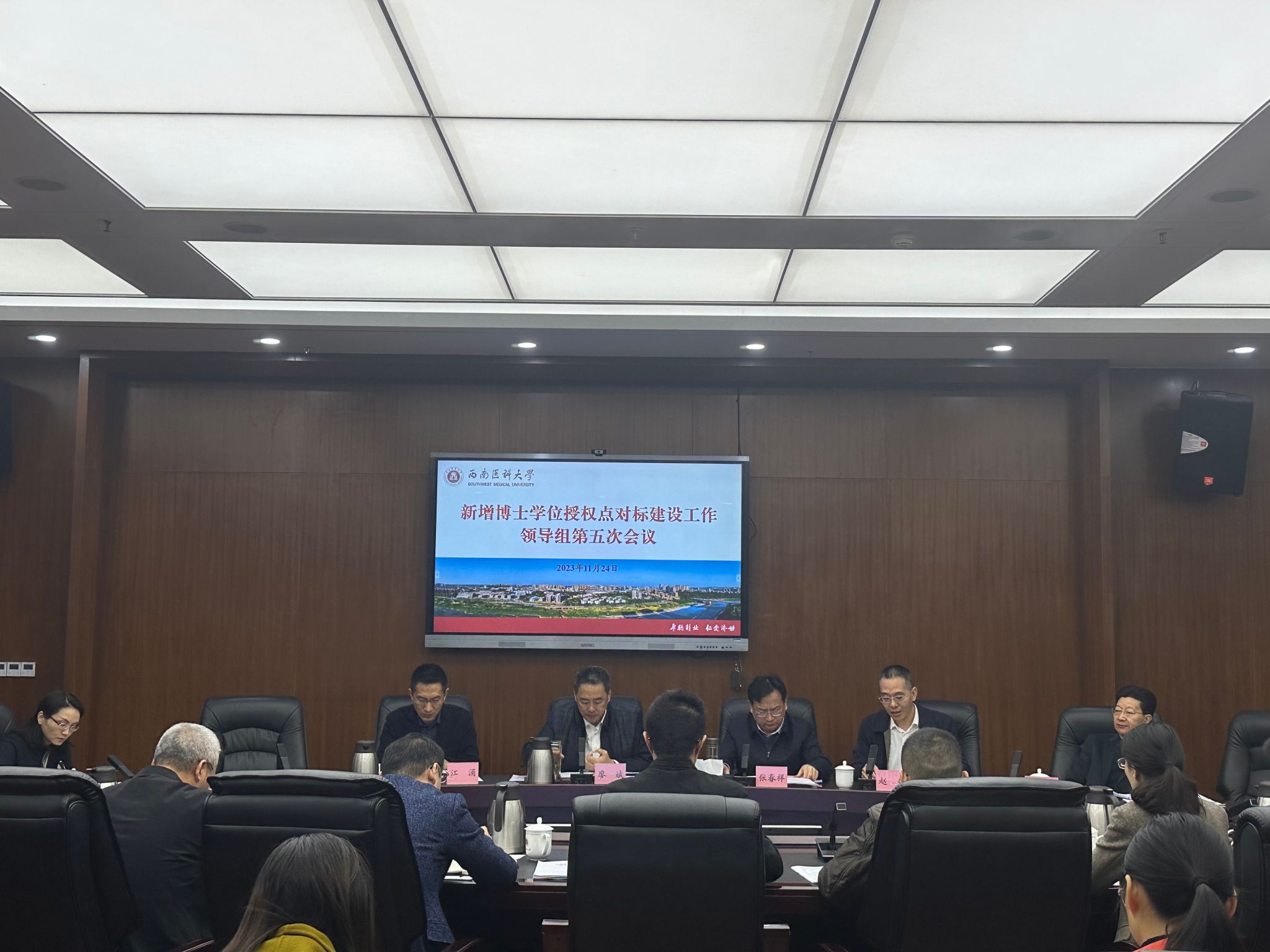 11月24日上午,西南医科大学新增博士学位授权点对标建设工作领导组第五次会议在城北校区第一会议室召开。学校党委书记廖斌,党委副书记、校长张春祥,党委常委、副校长江涌、赵领,副校长彭钢及相关部门负责人等30余人出席会议,会议由赵领主持。