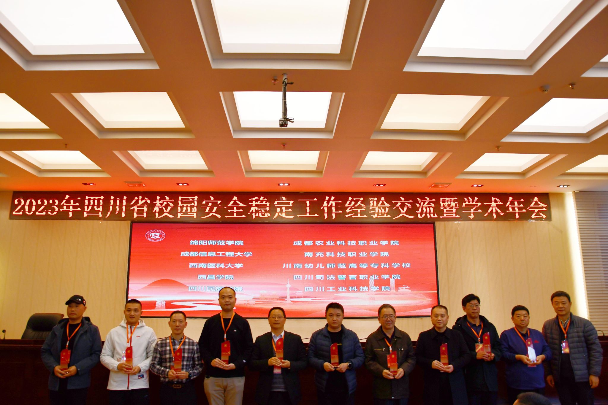 2023年四川省校园安全稳定工作经验交流暨学术年会于126-128日在西昌学院举行。本次会议对2023年度四川省高校“平安校园”建设先进单位、先进个人进行了表彰,我校获评2023年度四川省高等院校安全保卫工作“平安校园”建设先进单位。保卫处董颋婷、柳建军获评保卫干部先进个人,林叶彬、罗安勇、涂天权获评优秀安保先进个人,李豪、吴红、殷珺洁获评学生先进个人。